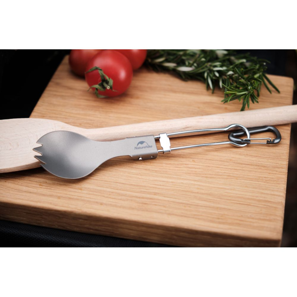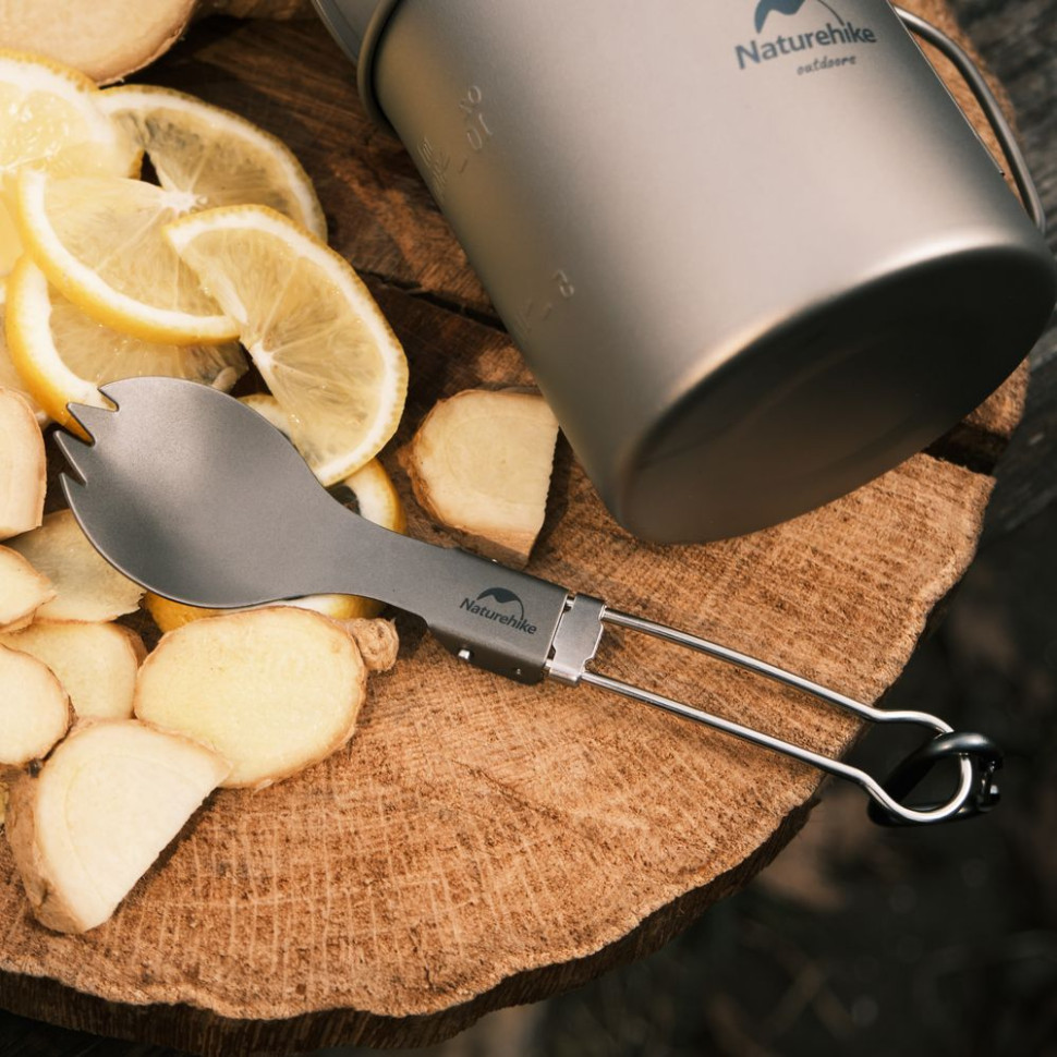 Ложко-виделка титанова складана Naturehike NH19C001-J сіра з мішечком