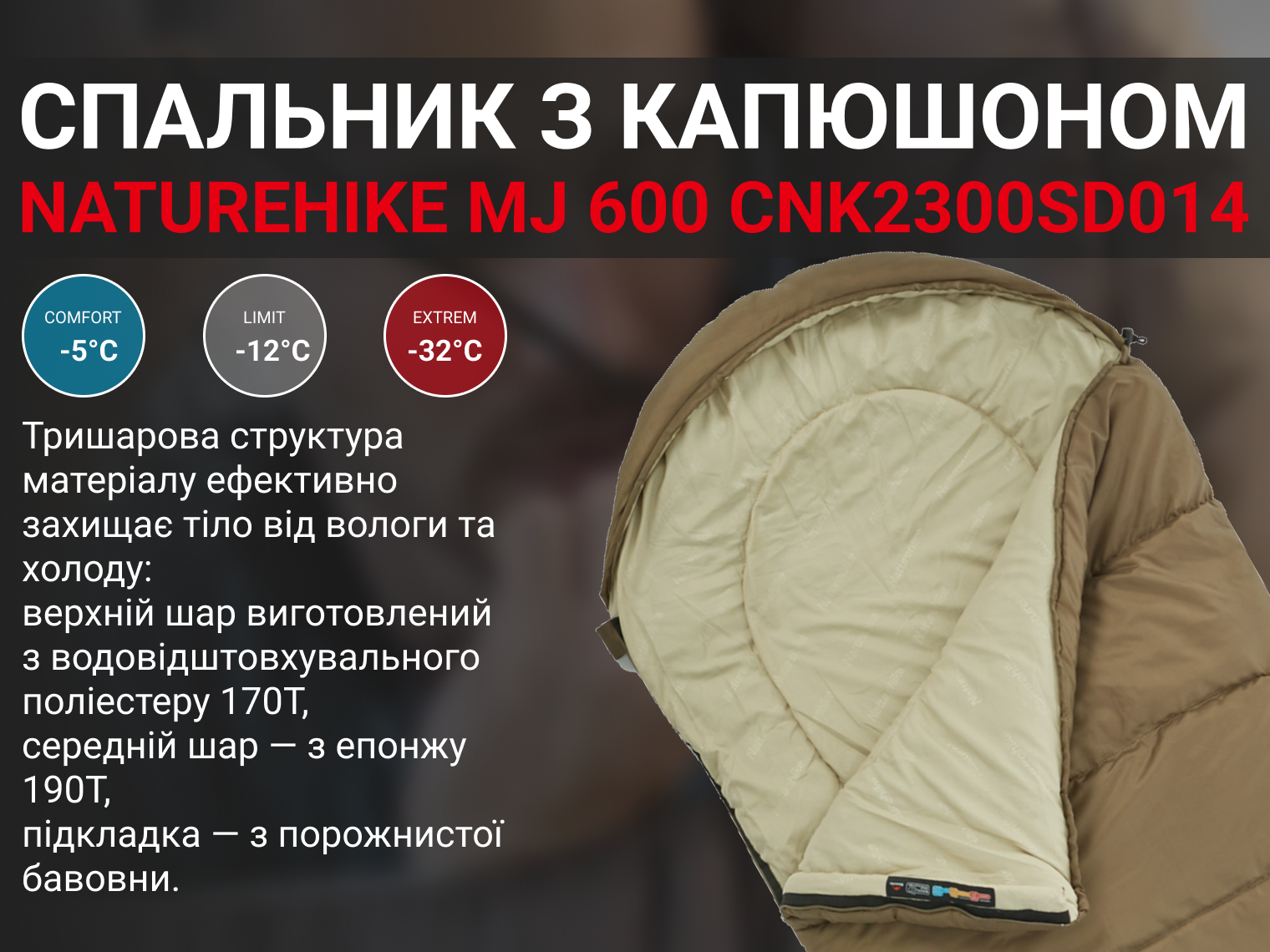 Опис спальника з капюшоном Naturehike MJ600 CNK2300SD014, коричневого: