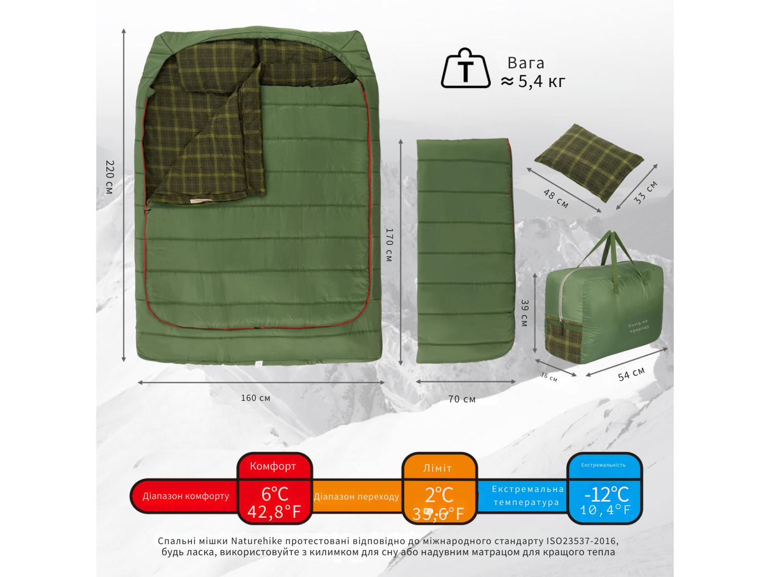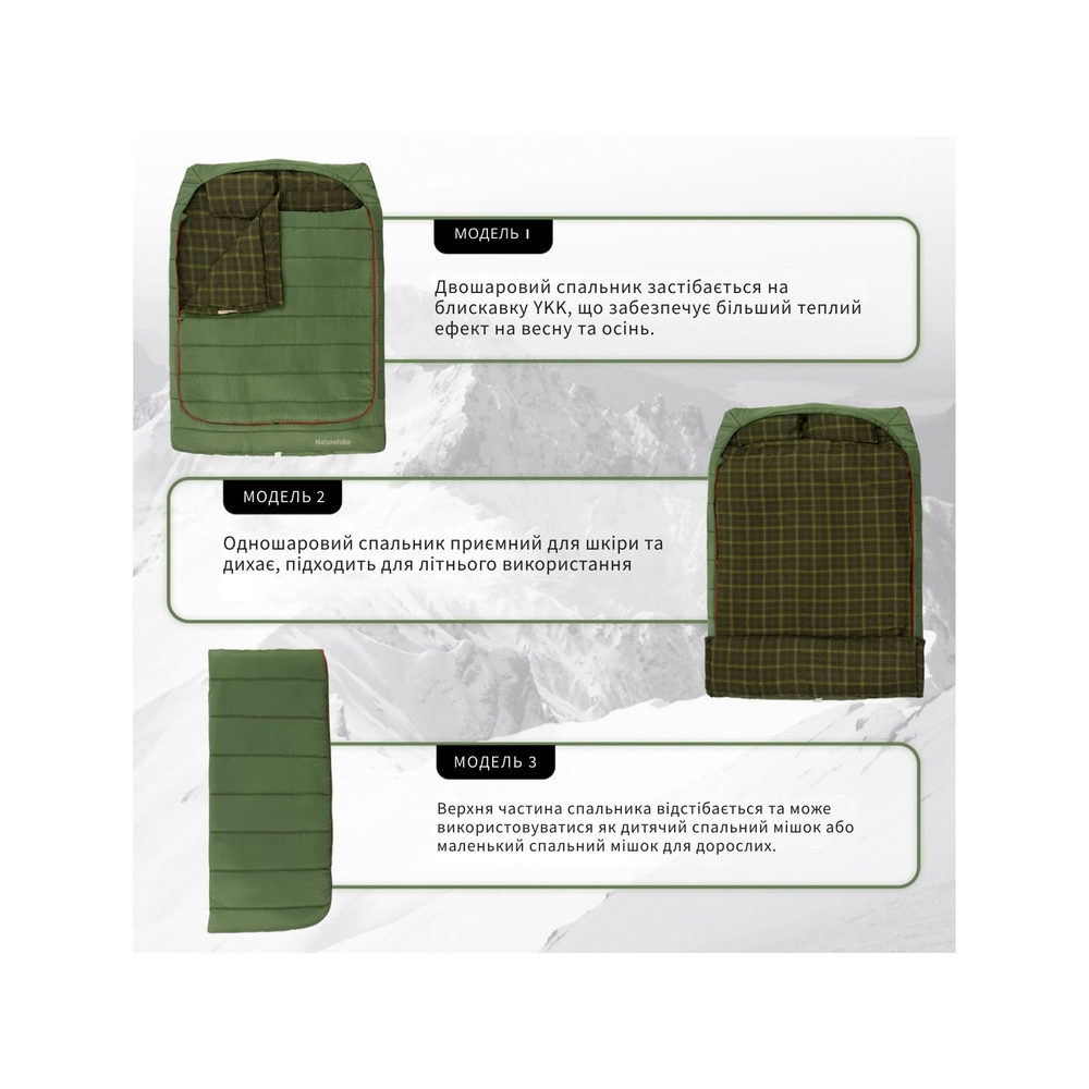 Опис двомісного спального мішка з подушками Naturehike CNK2350WS019, зеленого: