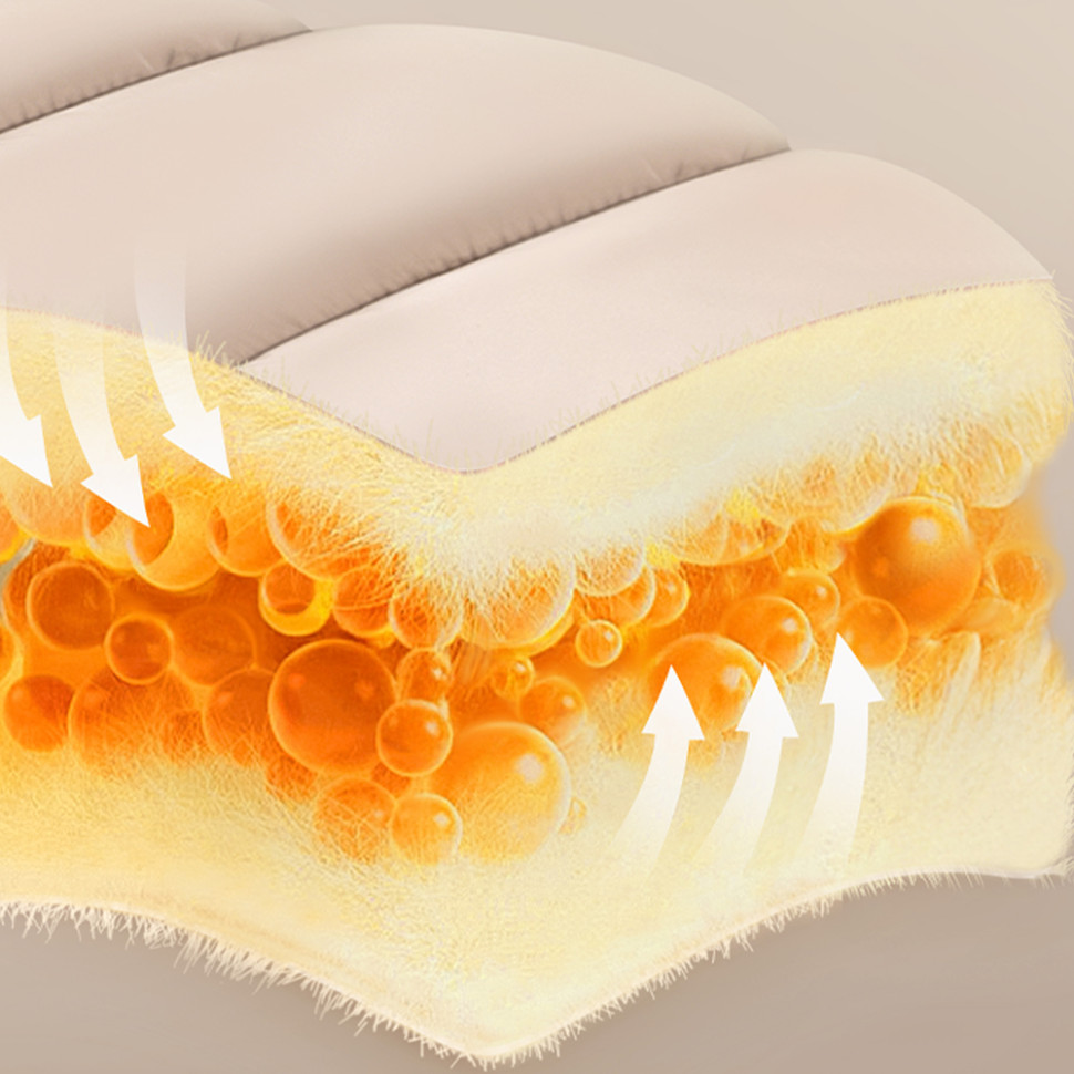 - Утеплювач — пір'яна бавовна 200 г/м². Об'ємний синтетичний наповнювач імітує властивості натурального пуху. Він не накопичує вологу, швидко відновлює форму та не збивається з часом.