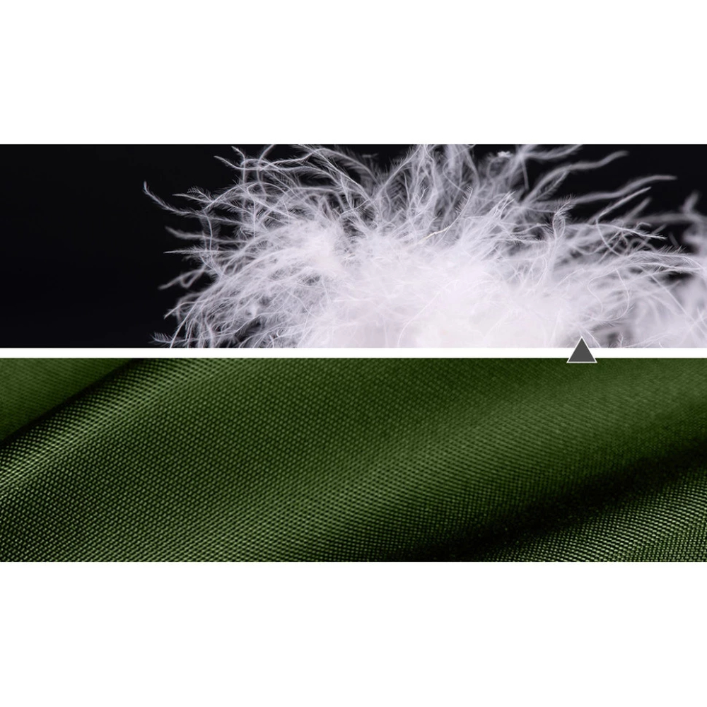 - Наповнювач з м'якого качиного пуху. Щільність наповнювача становить 280 г/м², балансуючи між повітропроникністю та теплозберігаючими функціями. Пух перешкоджає випріванню шкіри під час тривалого відпочинку та підлаштовується під умови використання, зберігаючи природне тепло у разі падіння значення на стовпчику термометра.