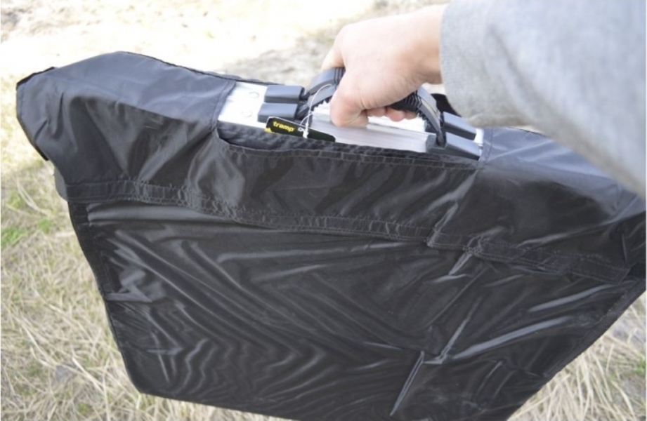 Стіл важить близько 4 кг і в складеному вигляді являє собою майже правильний квадрат (62 х 61,5 см), товщиною 7 див. В такому положенні виріб можна помістити в тканинний чохол (додається в комплекті), який під час перевезення запобігає появі подряпин. У ньому стіл також можна зберігати.
