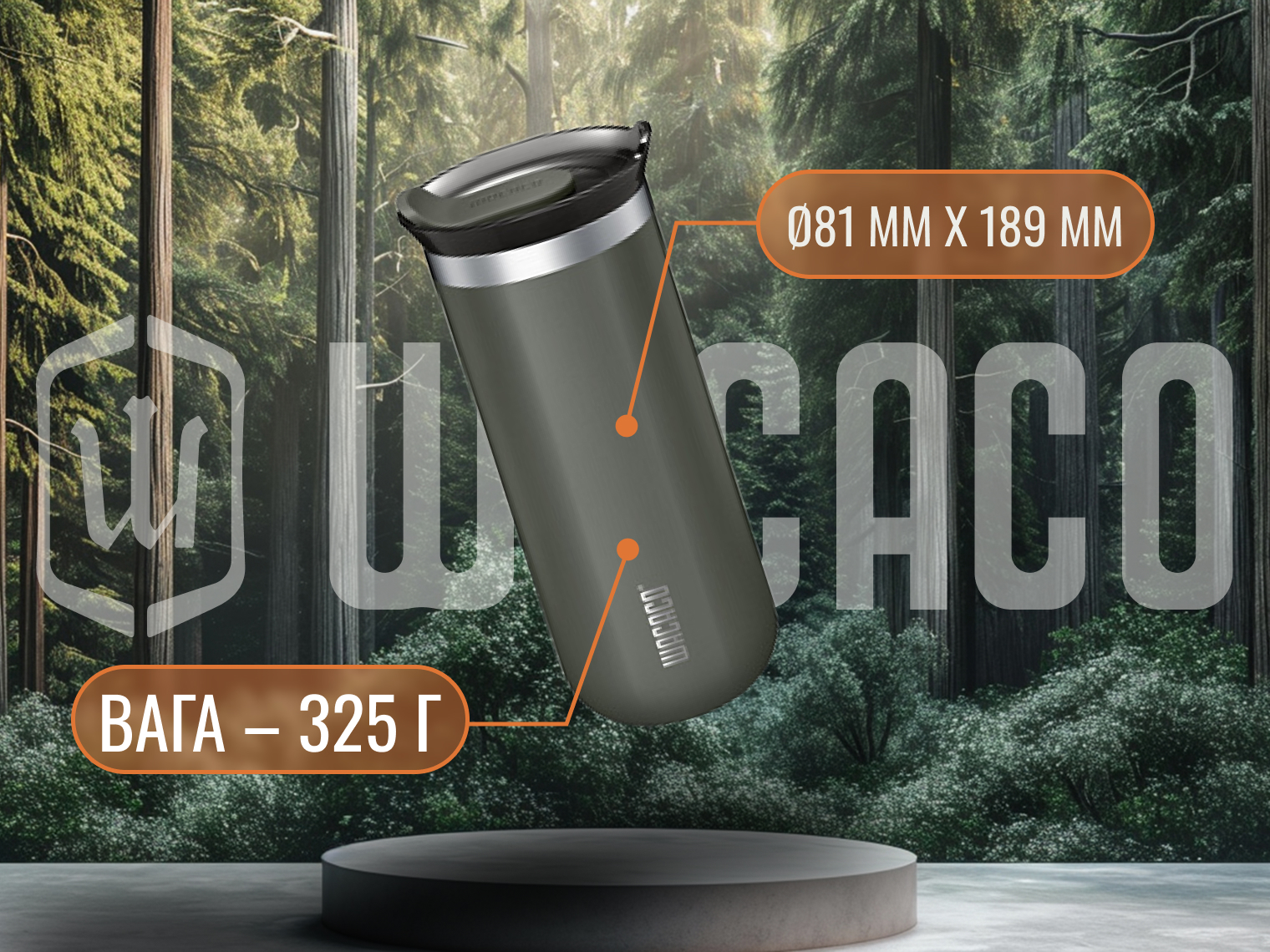 Розміри термокухля в об'ємі 435 мл становлять Ø81 мм x 189 мм і підходять для стандартних підсклянників в автомобілі. Крім універсальності, модель може похвалитися простотою у догляді — потрібно лише сполоснути конструкцію під проточною водою після використання.