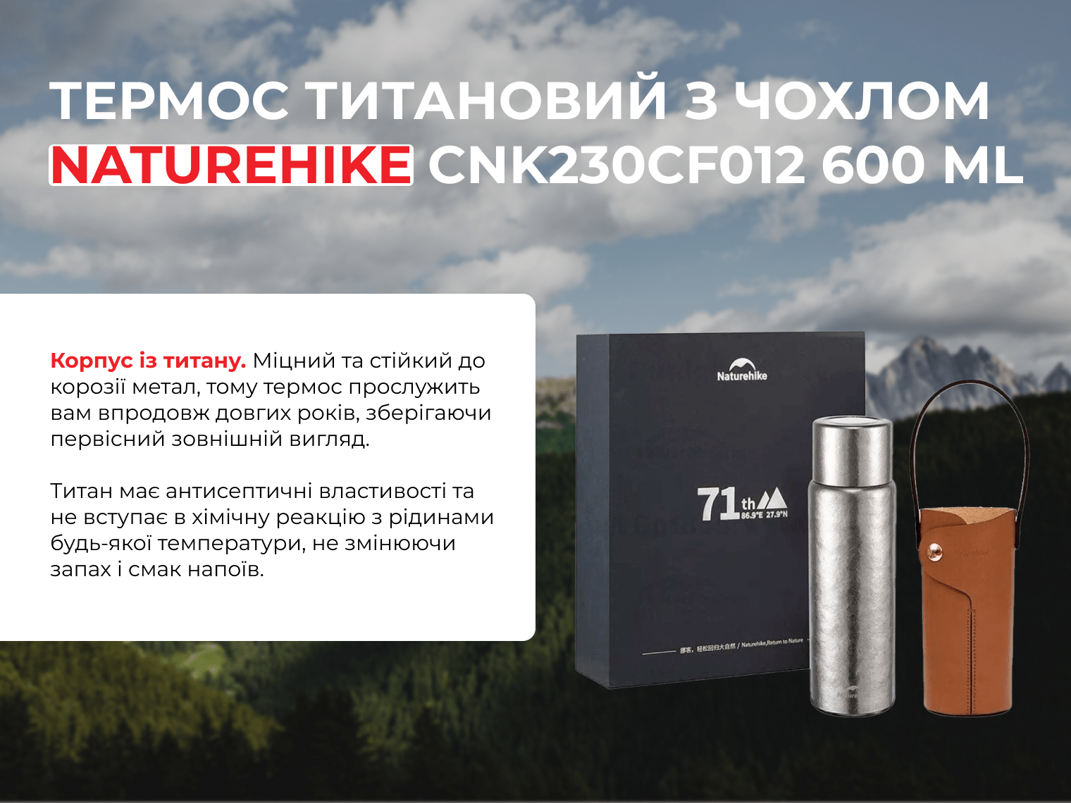 Опис термоса титанового з чохлом Naturehike CNK230CF012 600 ml: