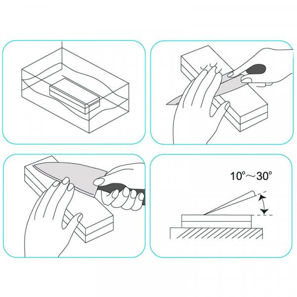 Перед використанням камінь необхідно замочити у води на 5-10 хвилин, щоб дочекатися, коли вийдуть останні бульбашками повітря. Тримайте інструмент під кутом 10-30°, проводите по краю поверхні каменю вперед і назад з легким натиском. Точіть його до отримання необхідного результату. У процесі роботи змочуйте камінь водою. Після використання камінь необхідно промити в проточній води і висушити.