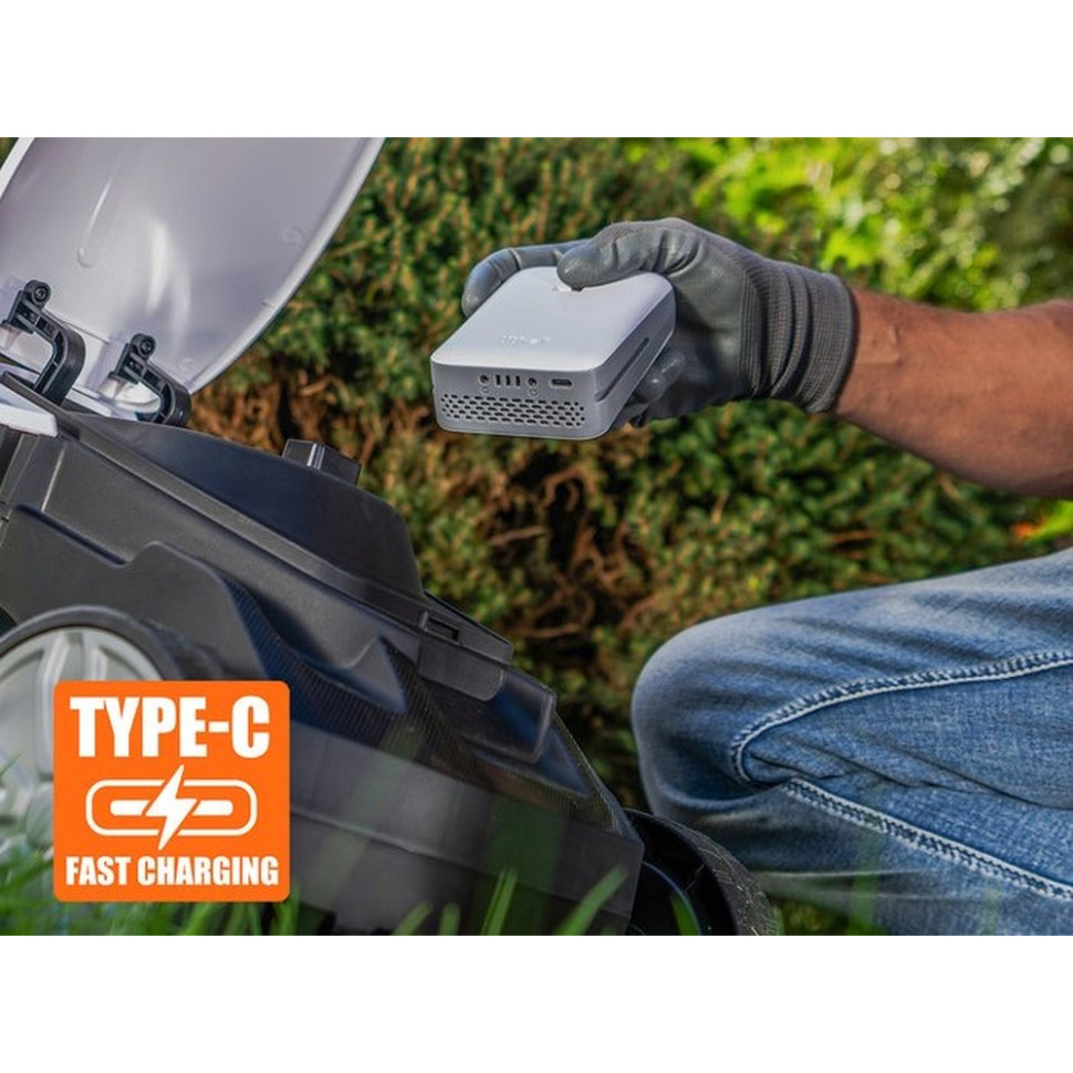 - Баланс між ємністю та портативністю. Ємність сягає 10000 мАгод, водночас вага конструкції не перевищує 400 г. Ви можете брати павербанк куди завгодно: на роботу, на дачний відпочинок чи в подорож і живити різні пристрої — від смартфона і планшета до шуруповерта і кущоріза.