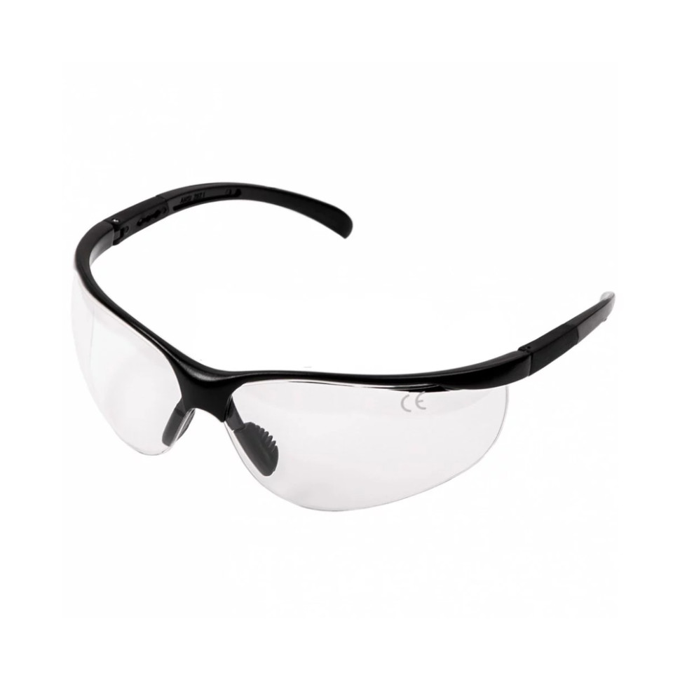 Захисні окуляри "Combat Zone SG1" в чорній оправі, з прозорими лінзами і захистом від ультра-фіолетового випромінювання.