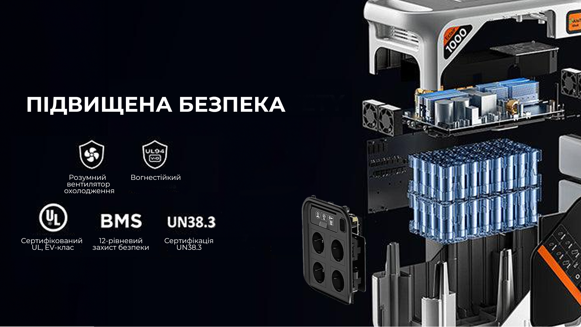 Вентилятори відрізняються практично безшумною роботою, тому станцію можна використовувати навіть уночі, не переймаючись за комфорт сну. Діапазон робочих температур акумулятора коливається від -10°C до 45°C, гарантуючи стабільну роботу в різних умовах.