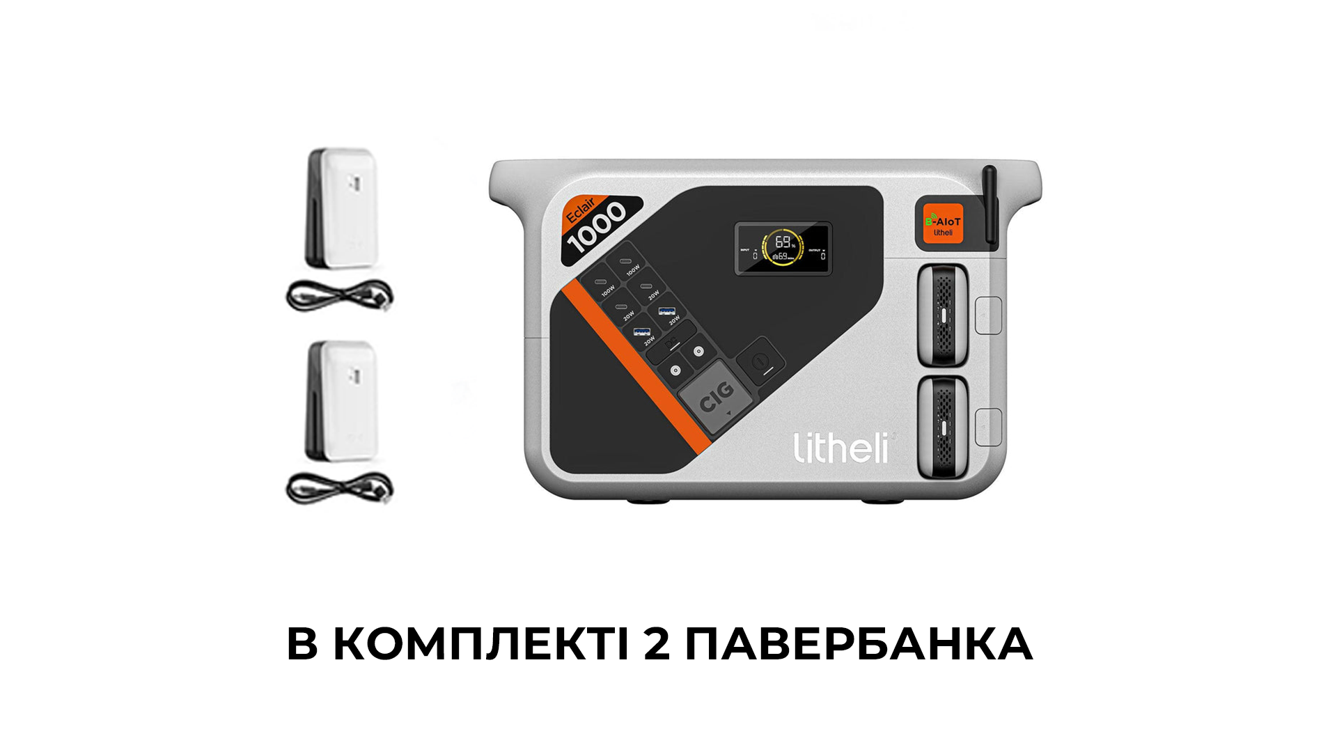 Зарядна станція Litheli B1000, 2 х Power Bank Litheli U20, 2 х зарядні кабелі USB Type-C, 1 х AC силовий кабель, 1 х автомобільний зарядний кабель, інструкція користувача.