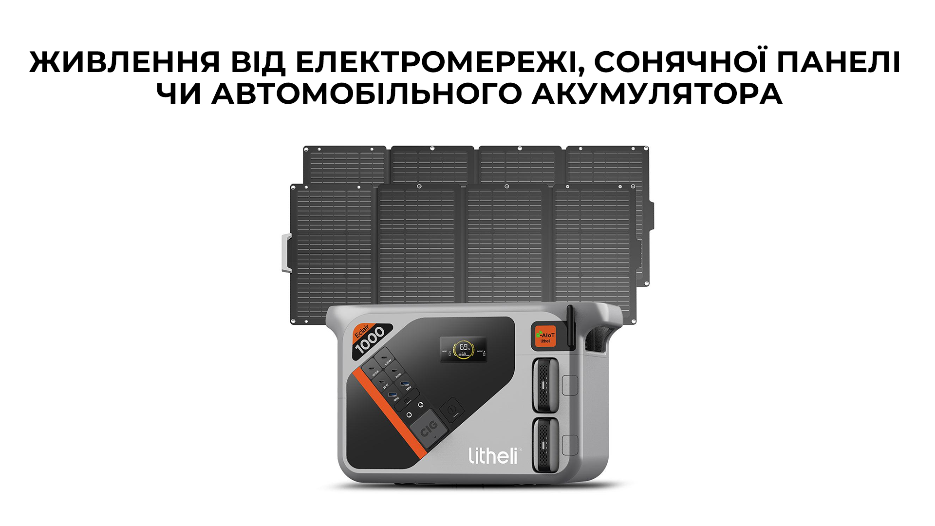 Опис зарядної станції Litheli 1800 Вт, 1069 Вт·год, LiFePO4, + 2 Power Bank (U20EH17-0A200):
